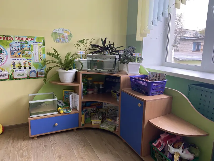 В центрах природы имеются комнатные растения (в соответствии с возрастной группой) и паспорта на них, животные (рыбки, черепахи, кролик); оборудование для проведения экспериментов, а также игрушки и оборудование для игр с водой, песком, воздухом; демонстрационный лабораторный и дидактический материала (различные коллекции, природный материал и т.д.), а также дидактические игры и их картотеки, энциклопедическая литература, различные тематические альбомы. Центры природы эстетически оформлены (наличие игрового персонажа, художественное оформление), дают возможность для свободного экспериментирования детей, обеспечена безопасность при организации деятельности данного центра.