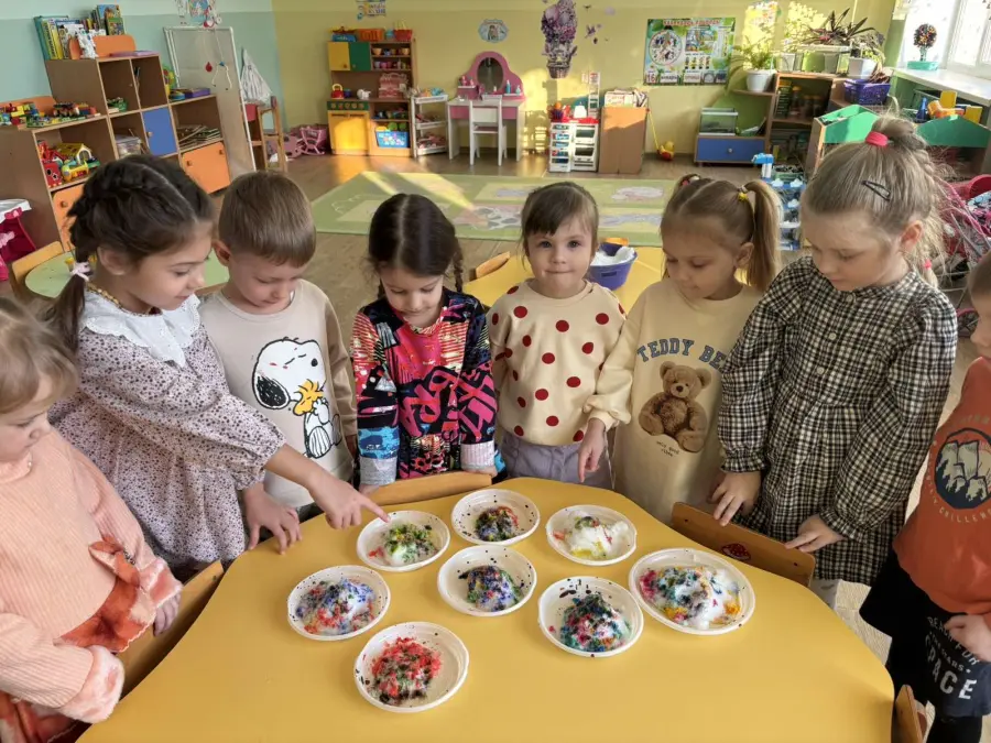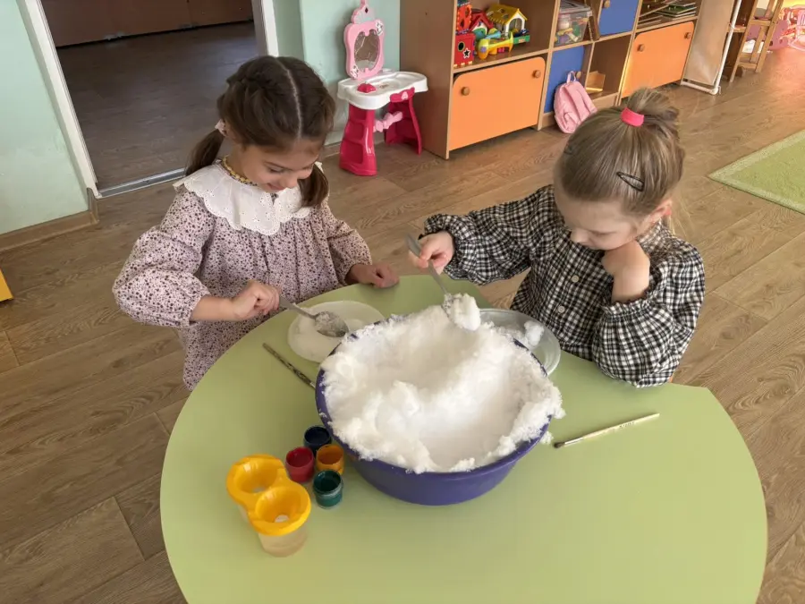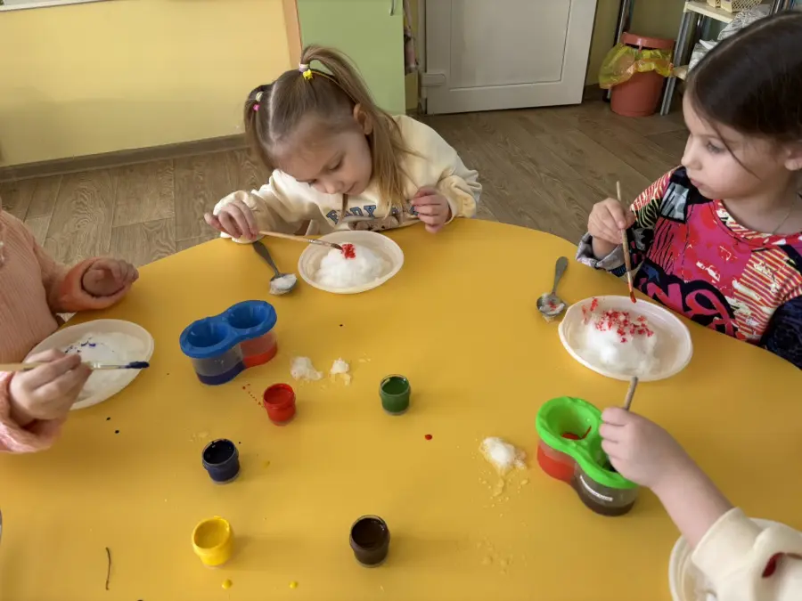 Самым увлекательным для юных исследователей было раскрашивание снежков в разные цвета и наблюдение за процессом превращения в разноцветные лужицы.