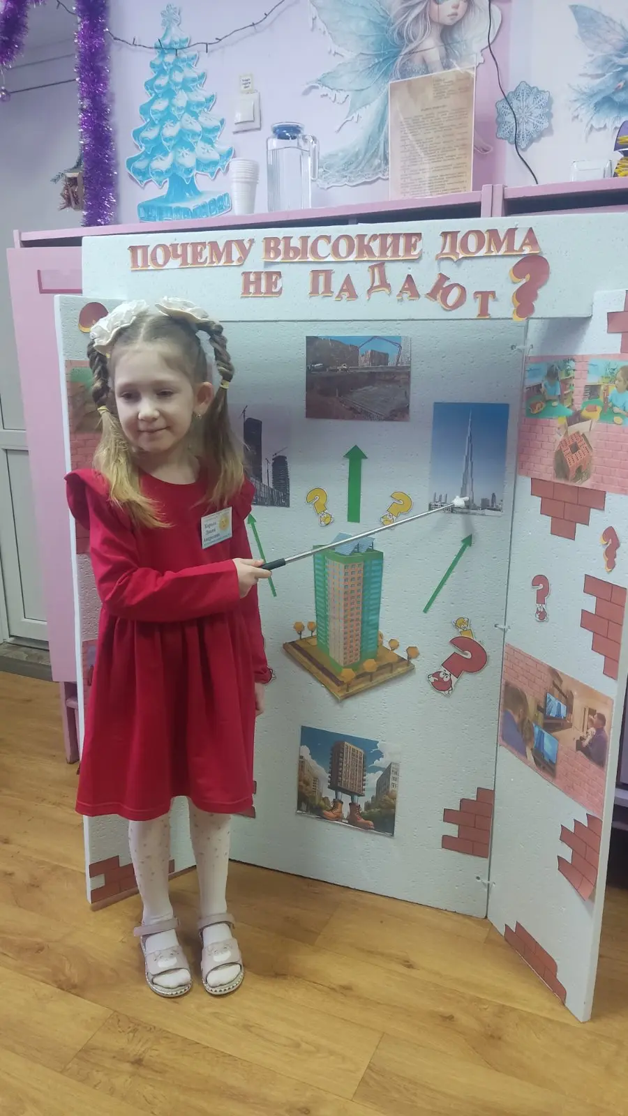 Король Диана, воспитанницагруппы № 4 "Буратино" с исследовательской работой "Почему высокие дома не падают?".