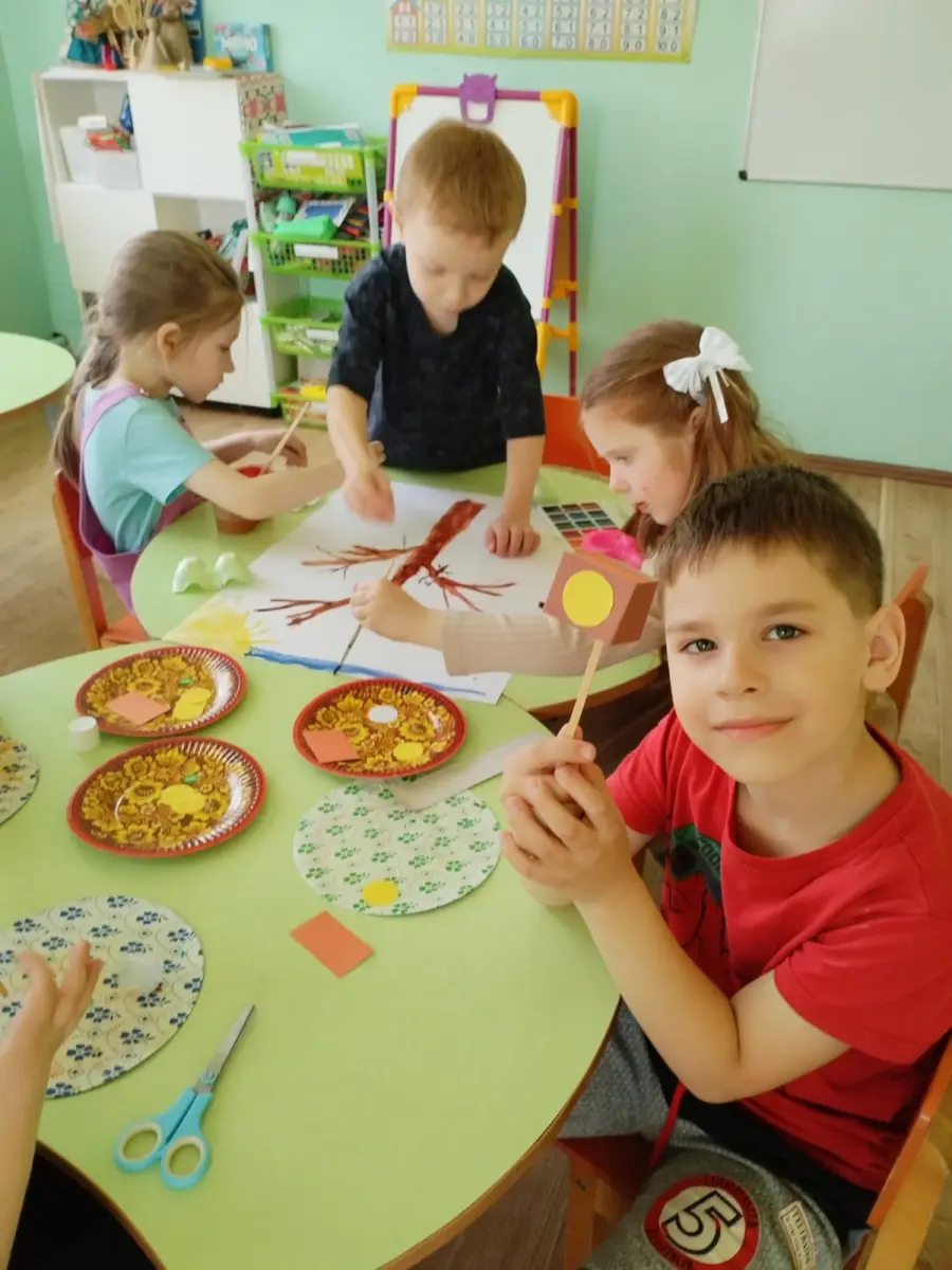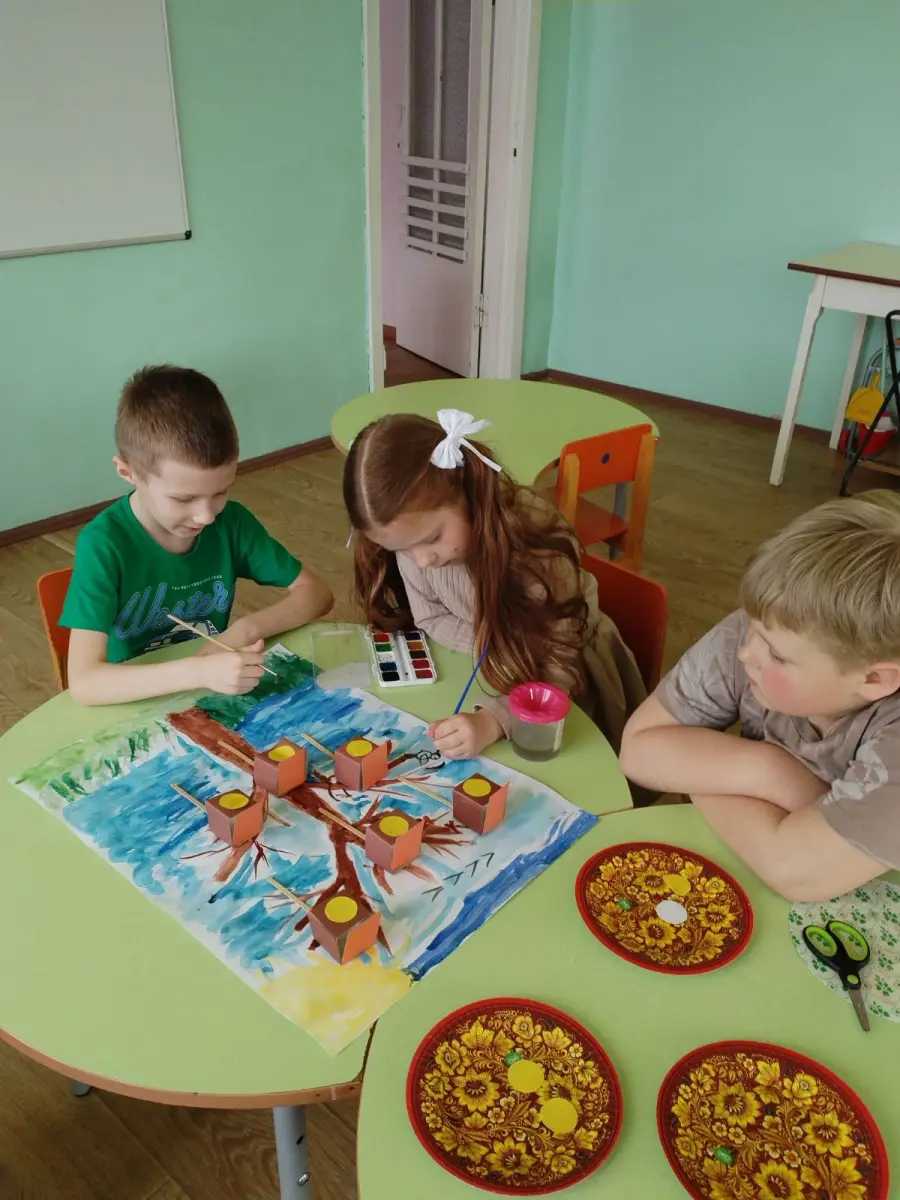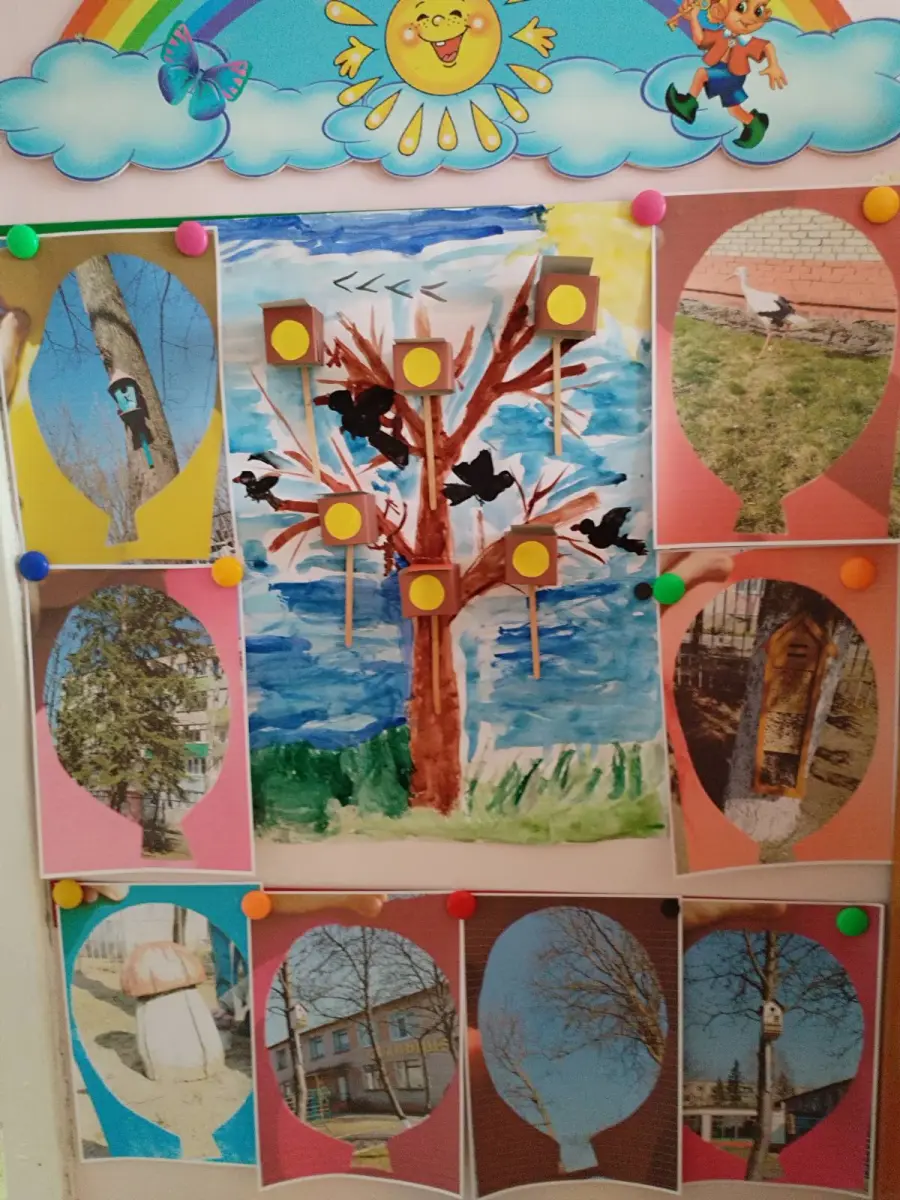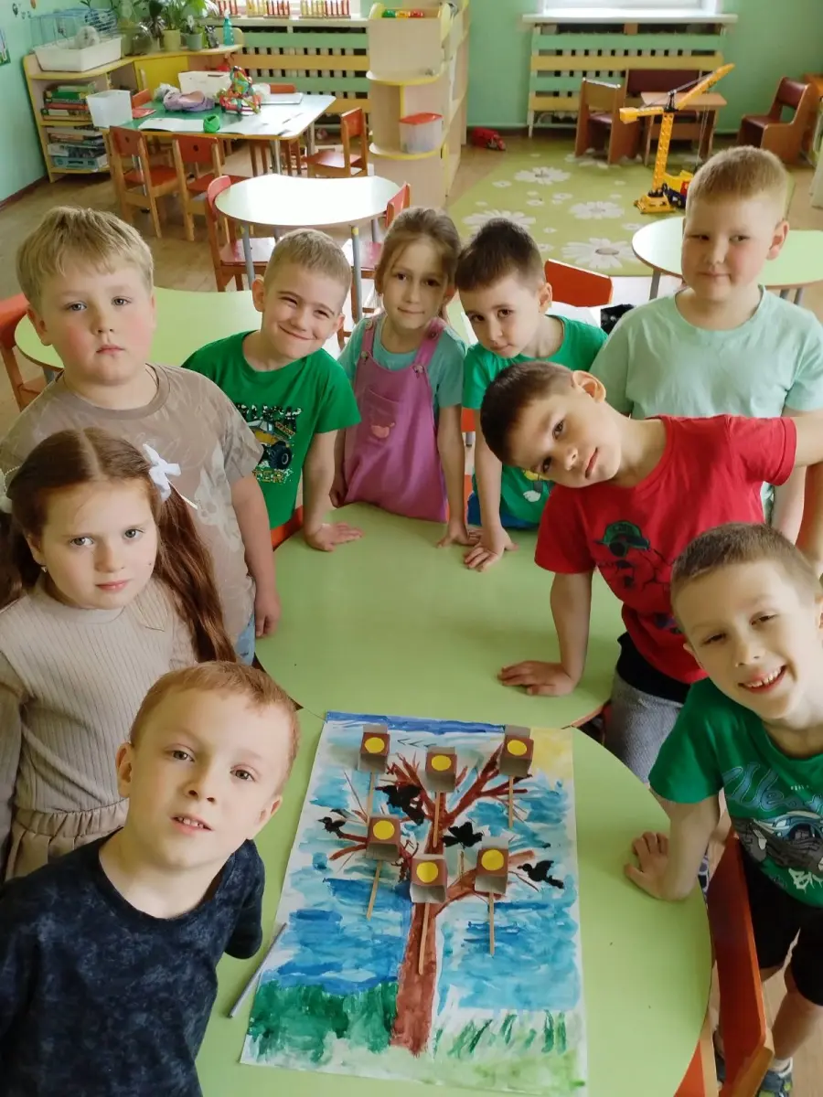 Сегодня воспитанники старшей группы № 4 вместе с воспитателем дошкольного образования Тамарович О.С. создавали коллективную аппликацию "Весна пришла. Птицы прилетели".